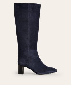 Erica Knee High Leather Boots-Navy Suede | Boden UK