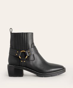Harness Detail Biker Boots-Black Leather | Boden UK