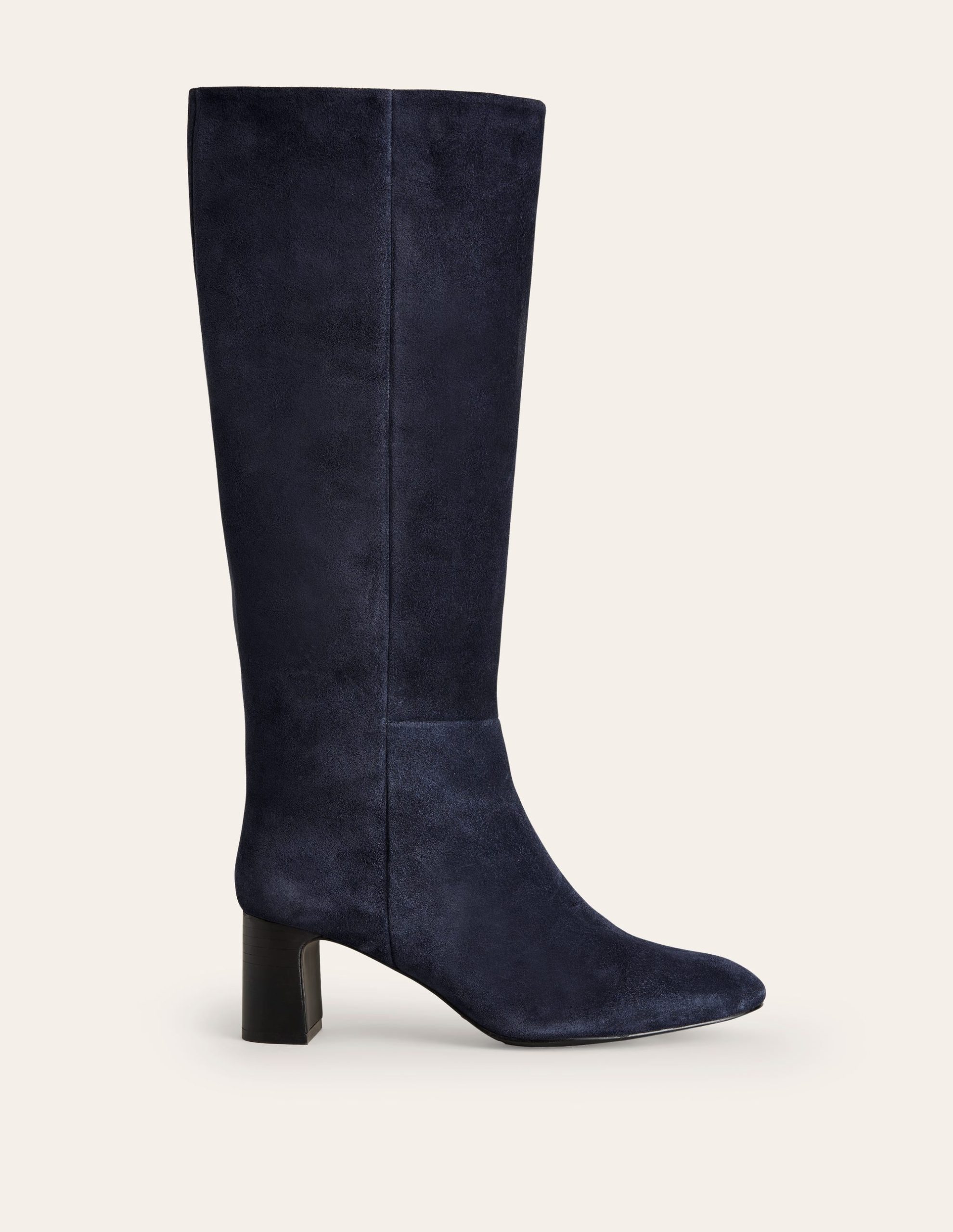 Erica Knee High Leather Boots-Navy Suede | Boden UK